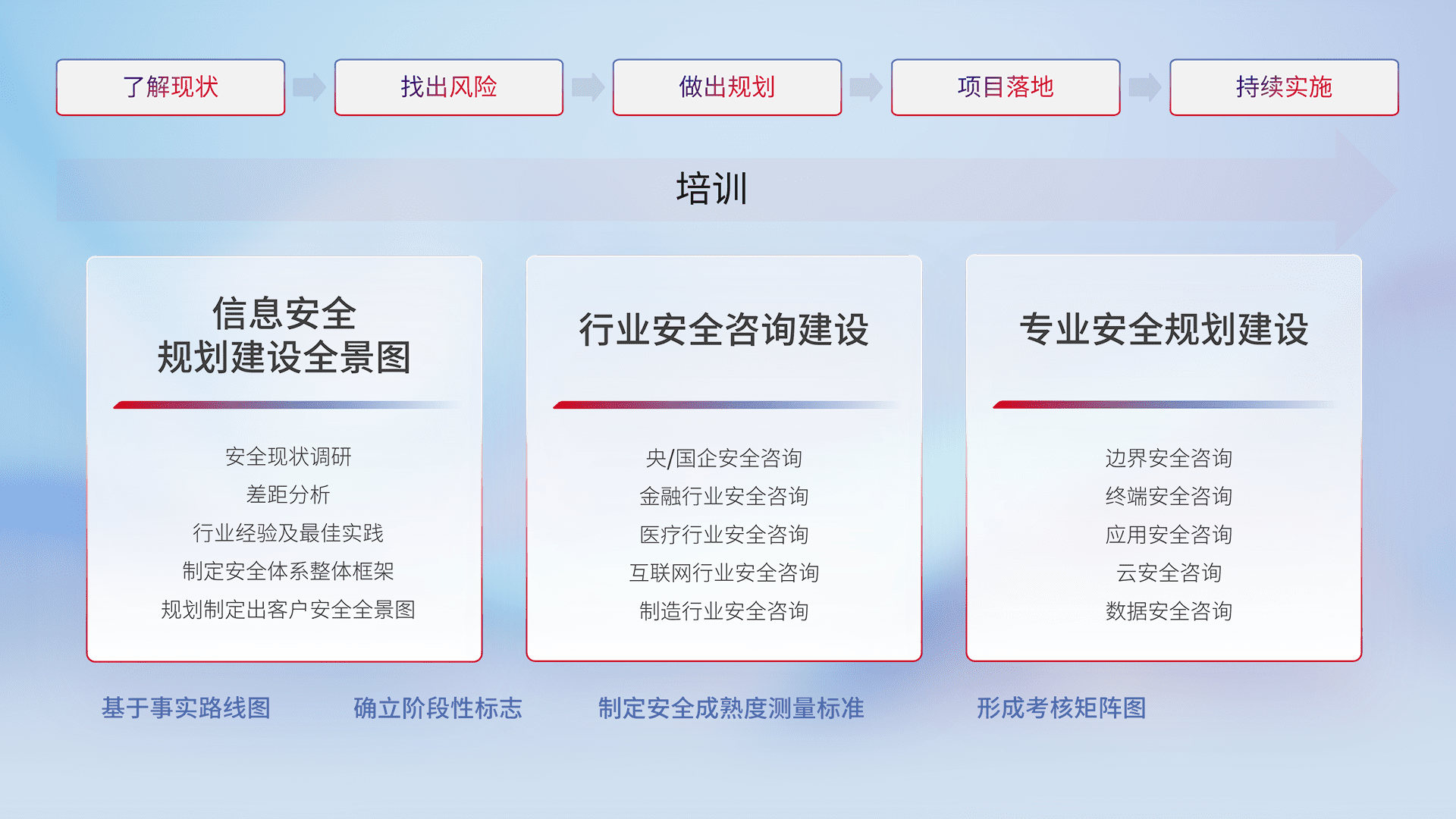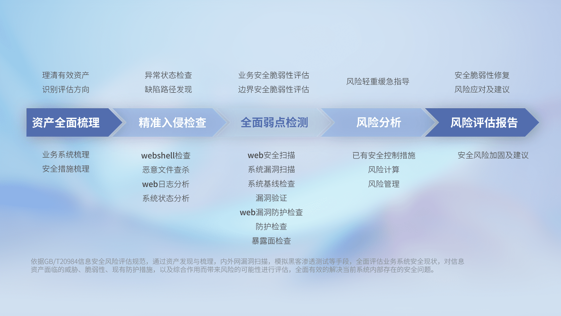针对客户行业特性,,,以专业的安全服务+多厂商联合解决方案提供专属的一站式安全管理服务,,,,帮助客户全面感知网络空间威胁,,基于识别、、、检测、、分析、、、、防护、、、监测、、、、响应的服务理论模型,,从方案咨询、、集成交付、、评估验证、、、优化加固、、、运维运营,,,,致力于为客户提供完整的闭环管理式安全服务。。以实战经验为客户打造高抵御风险的安全体系,,,,帮助客户发现威胁、、、、对抗威胁、、、处置威胁,,不断积累安全对抗能力,,持续保障数字化安全。。。。