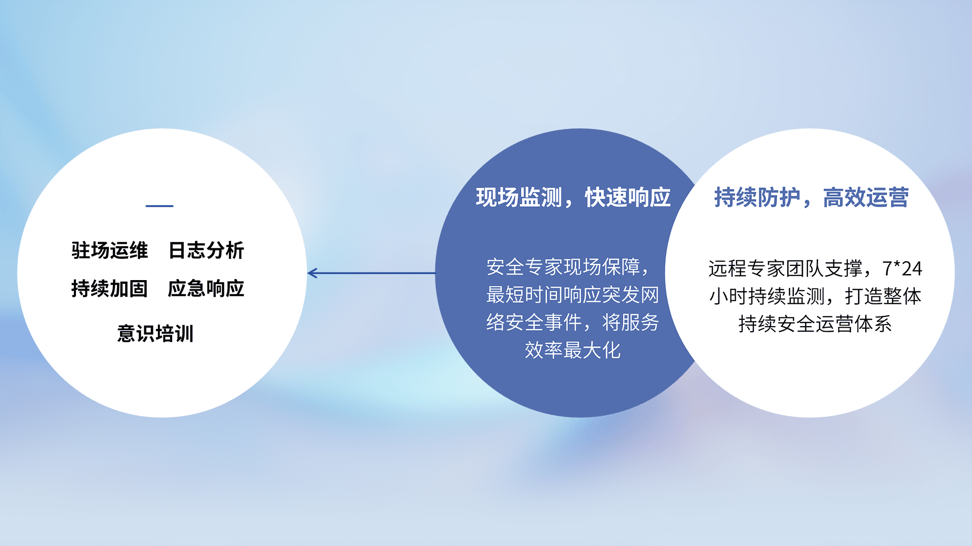 针对客户行业特性,,,,提供专属的一站式安全管理服务,,帮助客户全面感知网络空间威胁,,,,通过安全专家的线上、、线下防护支持,,,实现风险闭环,,将安全保障常态化,,,为客户打造常态化安全运维运营服务。。。